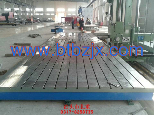 3、T型槽在平板的相對兩側面上,應有安裝手柄或吊裝位置的設置、螺紋孔或圓柱孔。設置吊裝位置時應考慮盡量減少因吊裝而引起的變形。